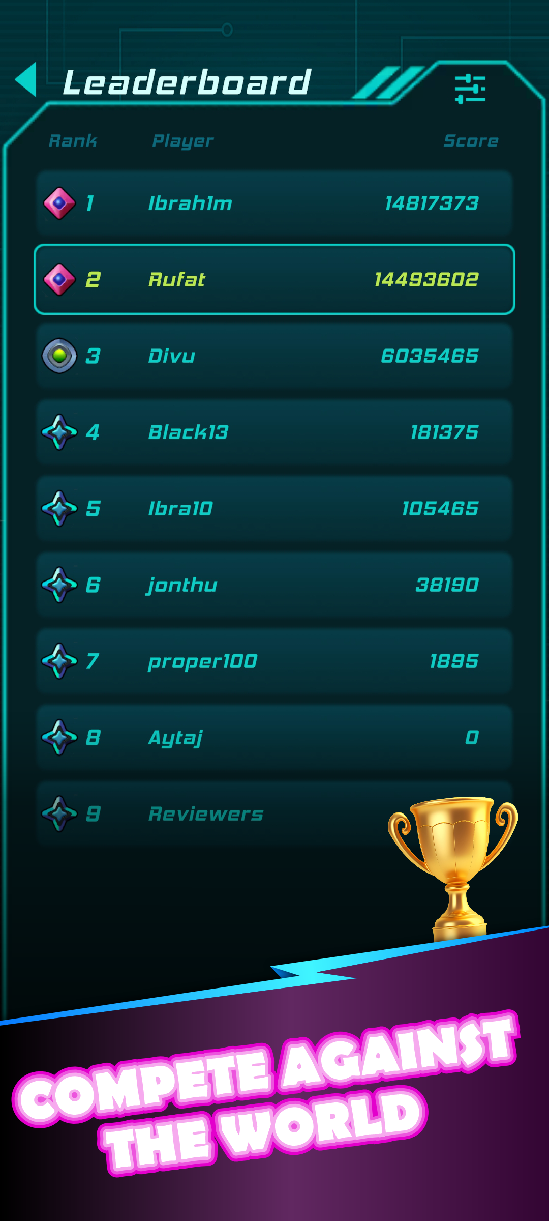 Compete on the global live leaderboard integrated directly in the app and see where you rank against players worldwide in real time.