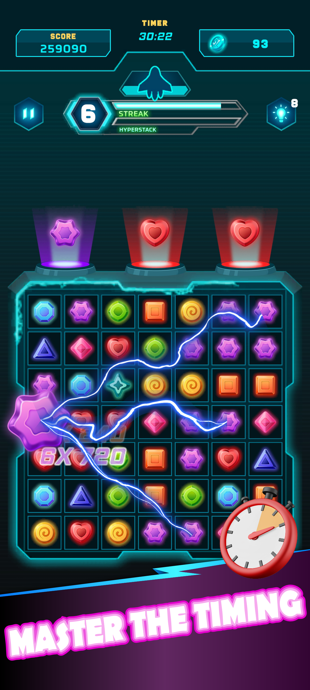 Experience vibrant cyberpunk visuals with neon geometry and rhythmic energy. No randomness, no paywalls — just pure skill-based gameplay that rewards focus and flow.